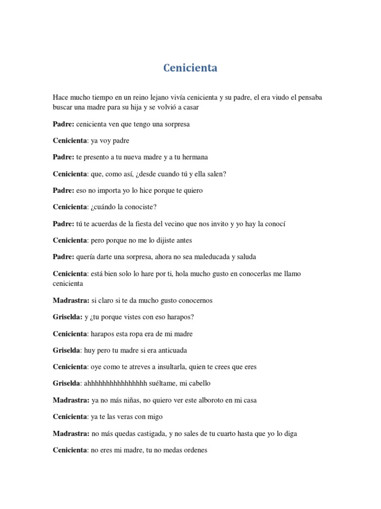 Hace mucho tiempo en un reino lejano viva cenicienta y su padre, el era viudo el pensaba