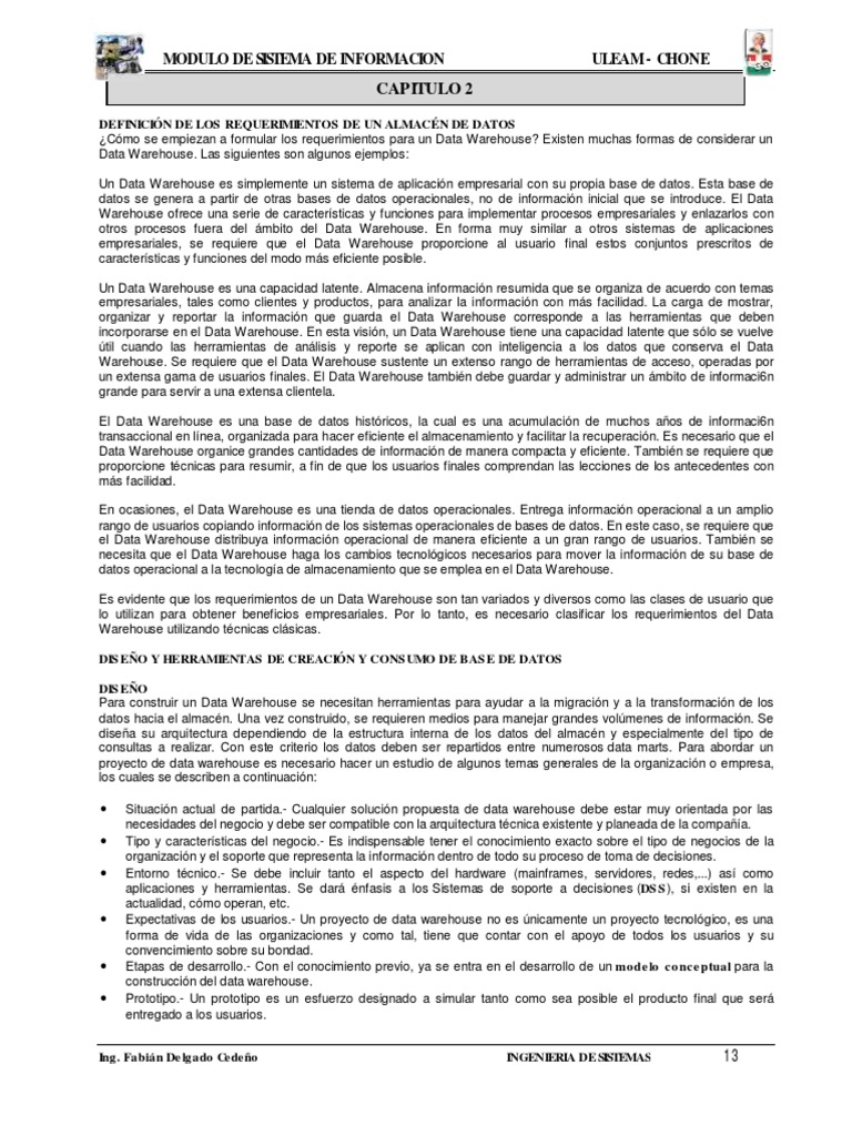 proyecto de data warehouse es necesario hacer un estudio de algunos temas generales de la organizacin o empresa,