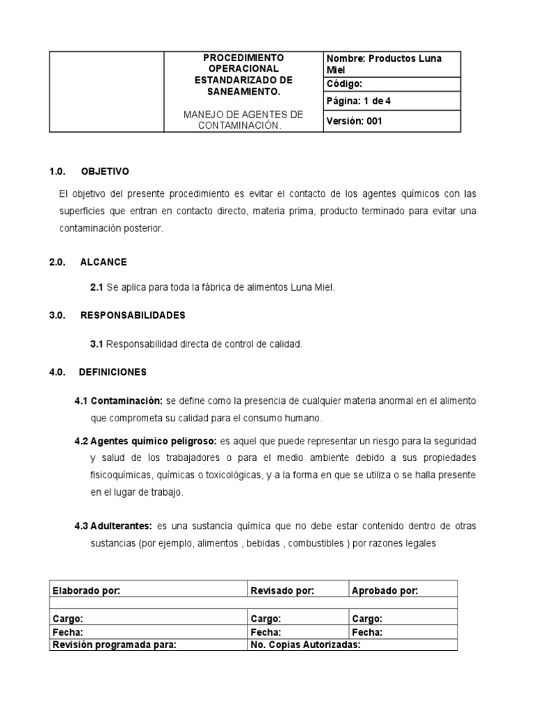 2.1 Se aplica para toda la fbrica de alimentos Luna Miel.