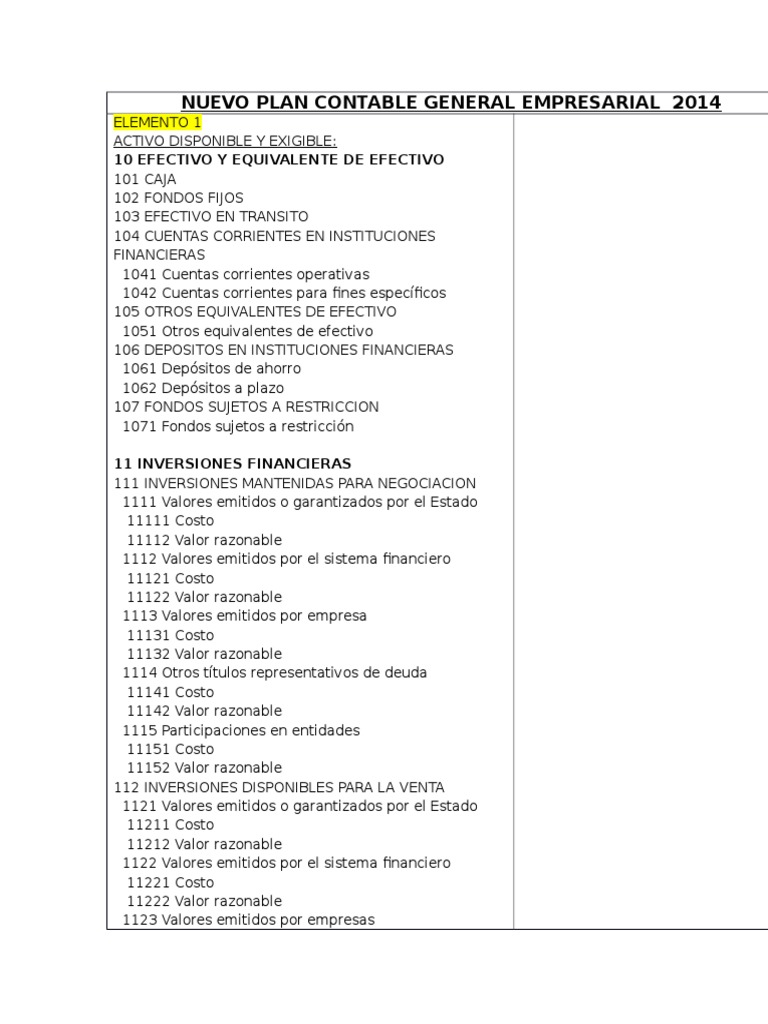 NUEVO PLAN CONTABLE GENERAL EMPRESARIAL 2014