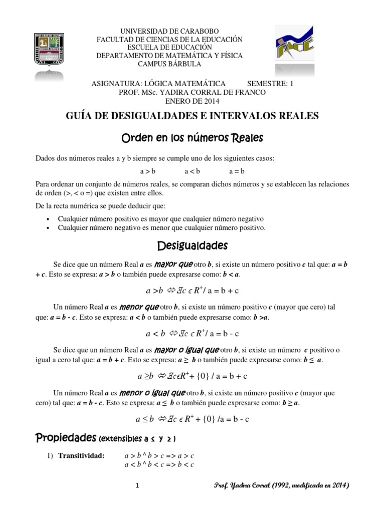 Corral, Y. (s.f.). Desigualdades e intervalos reales. [Manuscrito]. Valencia, Venezuela.