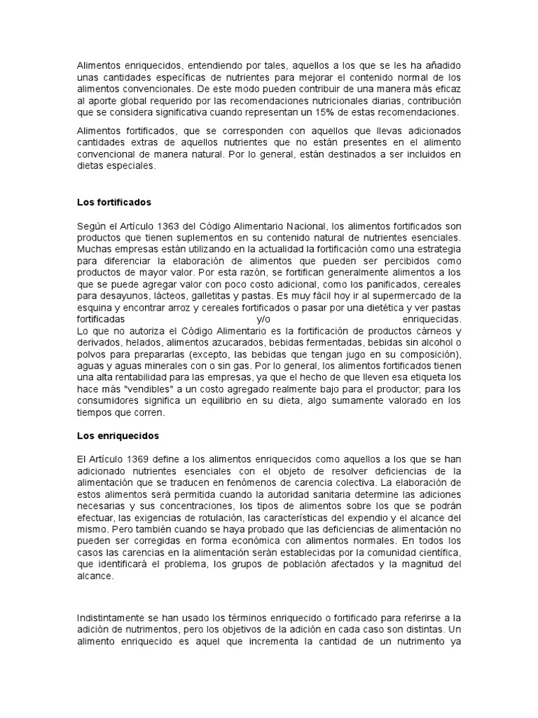 Segn el Artculo 1363 del Cdigo Alimentario Nacional, los alimentos fortificados son