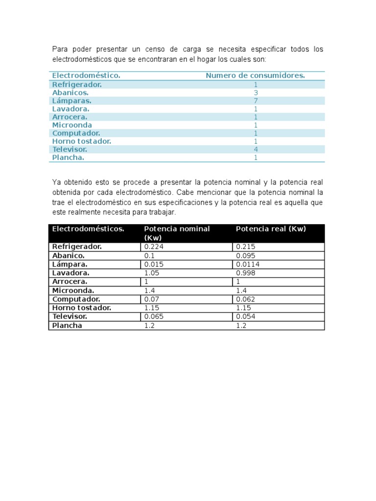 obtenida por cada electrodomstico. Cabe mencionar que la potencia nominal la