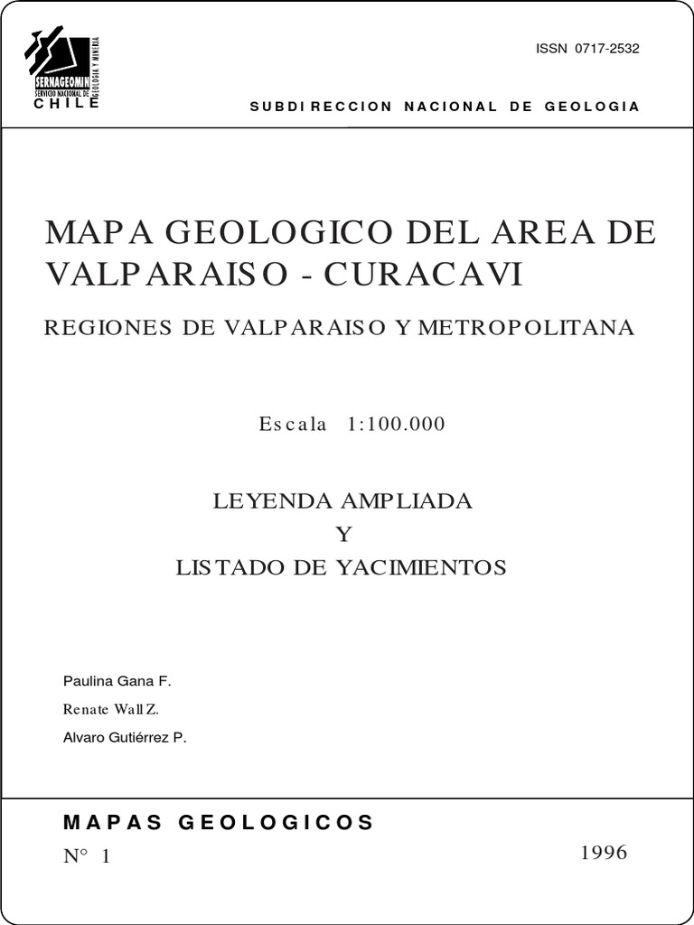 Wall, R.; Gana, P.; Gutirrez, A. 1996. Mapa Geolgico del rea de San Antonio-Melipilla, regiones de