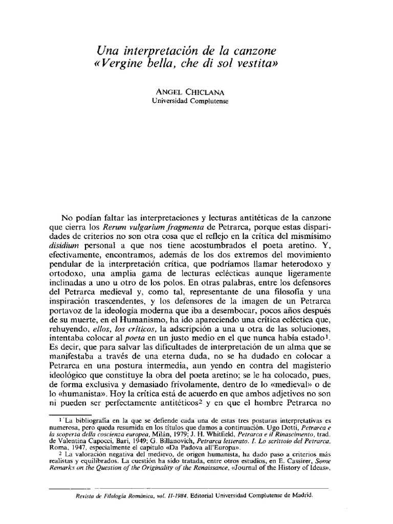 que cierra los Rerum vulgarium fragmenta de Petrarca, porque estas disparidades de criterios no son otra cosa que el reflejo en la crtica del mismsimo