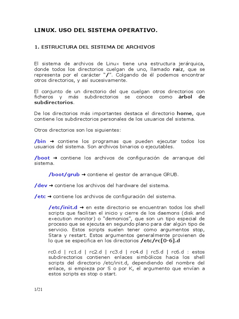 El sistema de archivos de Linux tiene una estructura jerrquica,