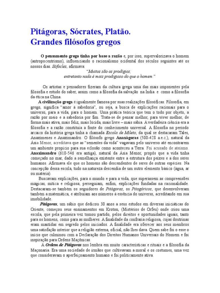 A civilizao grega igualmente famosa por suas realizaes filosficas. Filosofia, em