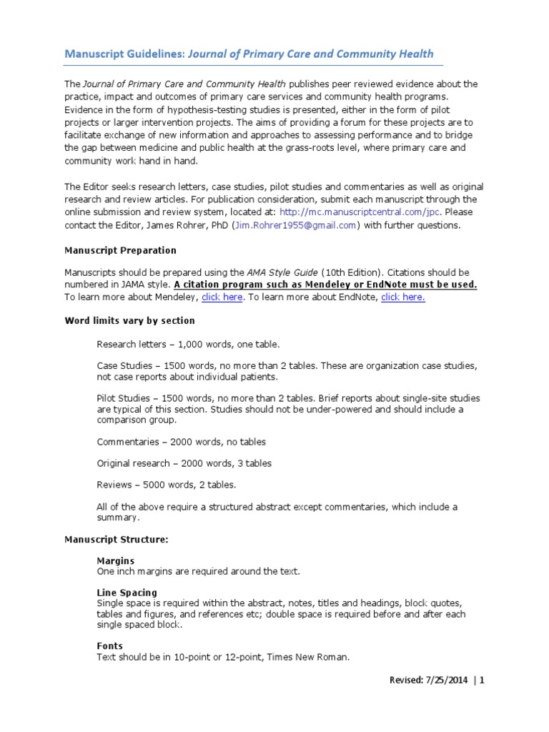 Manuscript Guidelines: Journal of Primary Care and Community Health