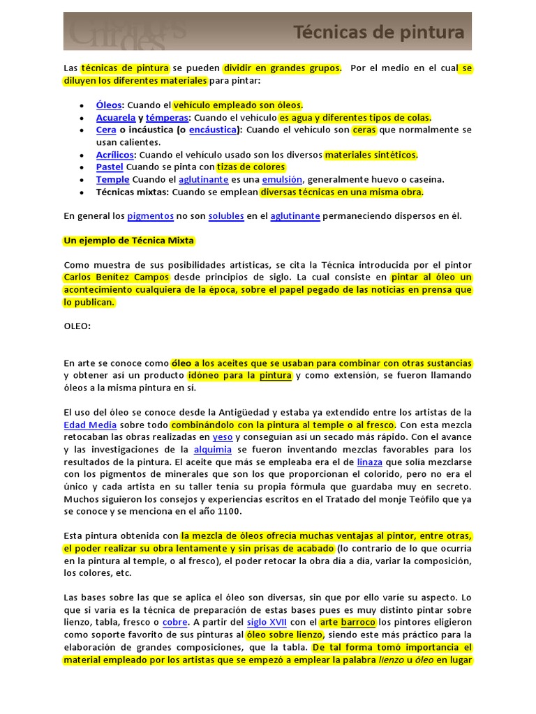 Las tcnicas de pintura se pueden dividir en grandes grupos.