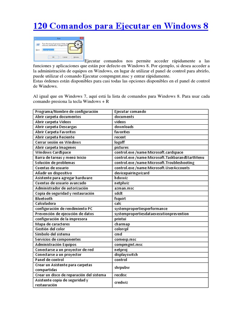 120 Comandos para Ejecutar en Windows 8