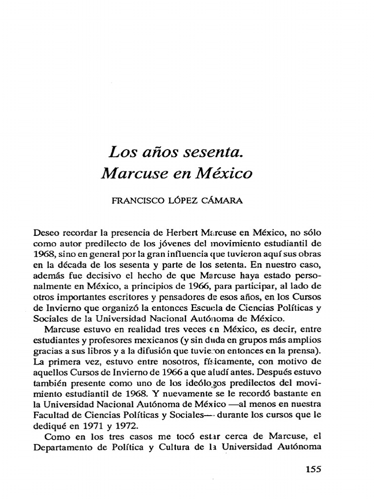 adems fue decisivo el hecho de que Marcuse haya estado personalmente en Mxico, a principios de 1966, para participar, al lado de