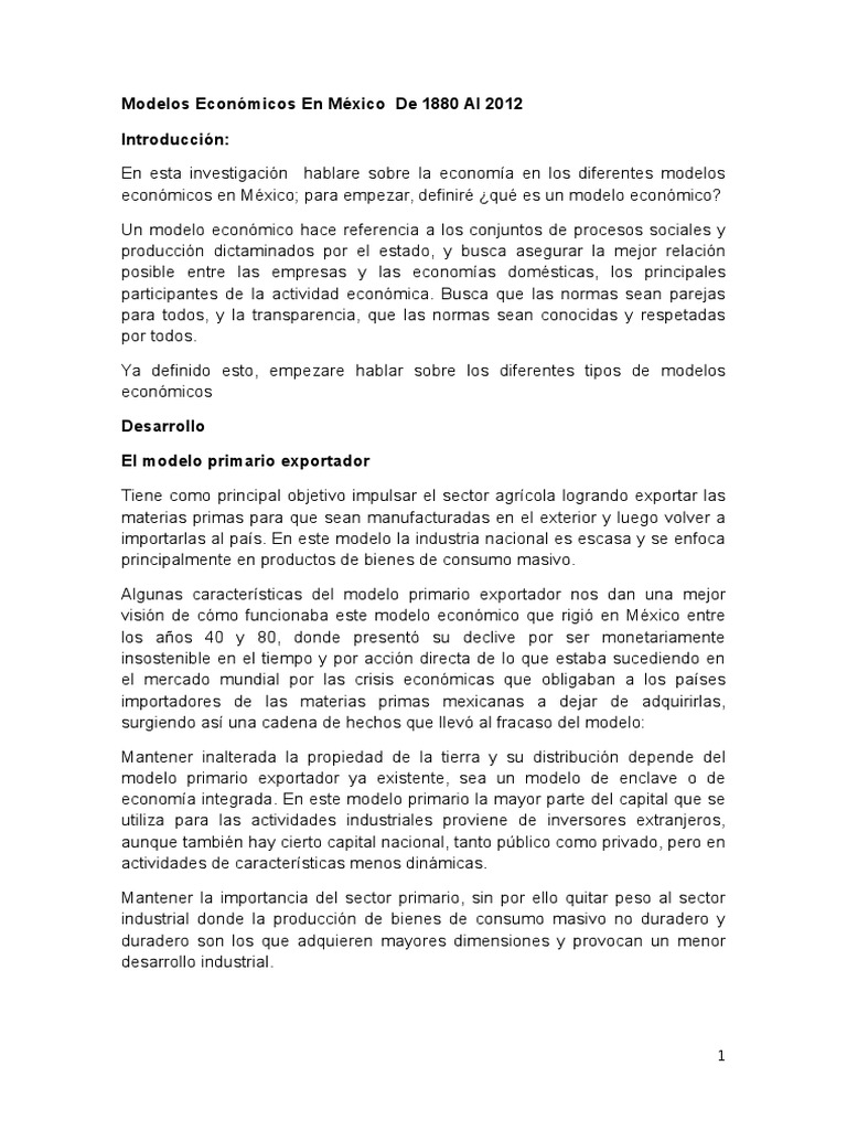 Modelos Econmicos En Mxico De 1880 Al 2012