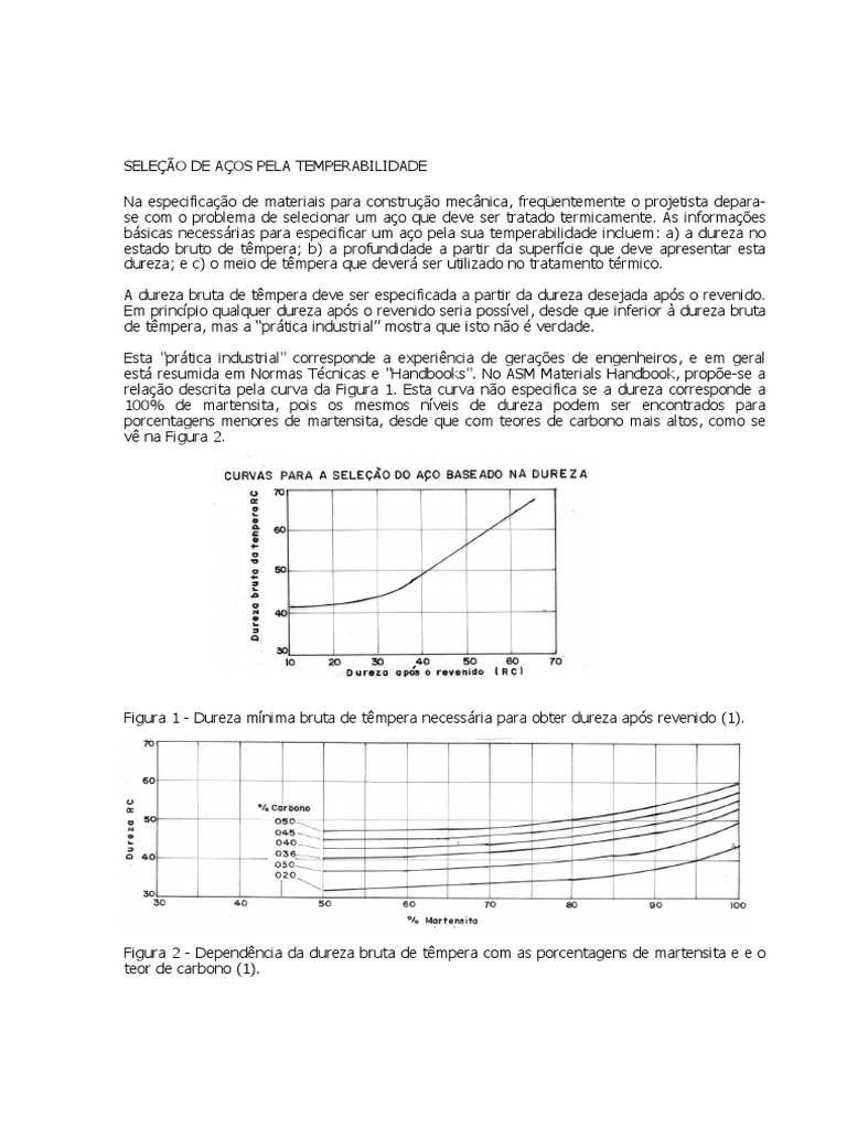 bsicas necessrias para especificar um ao pela sua temperabilidade incluem: a) a dureza no