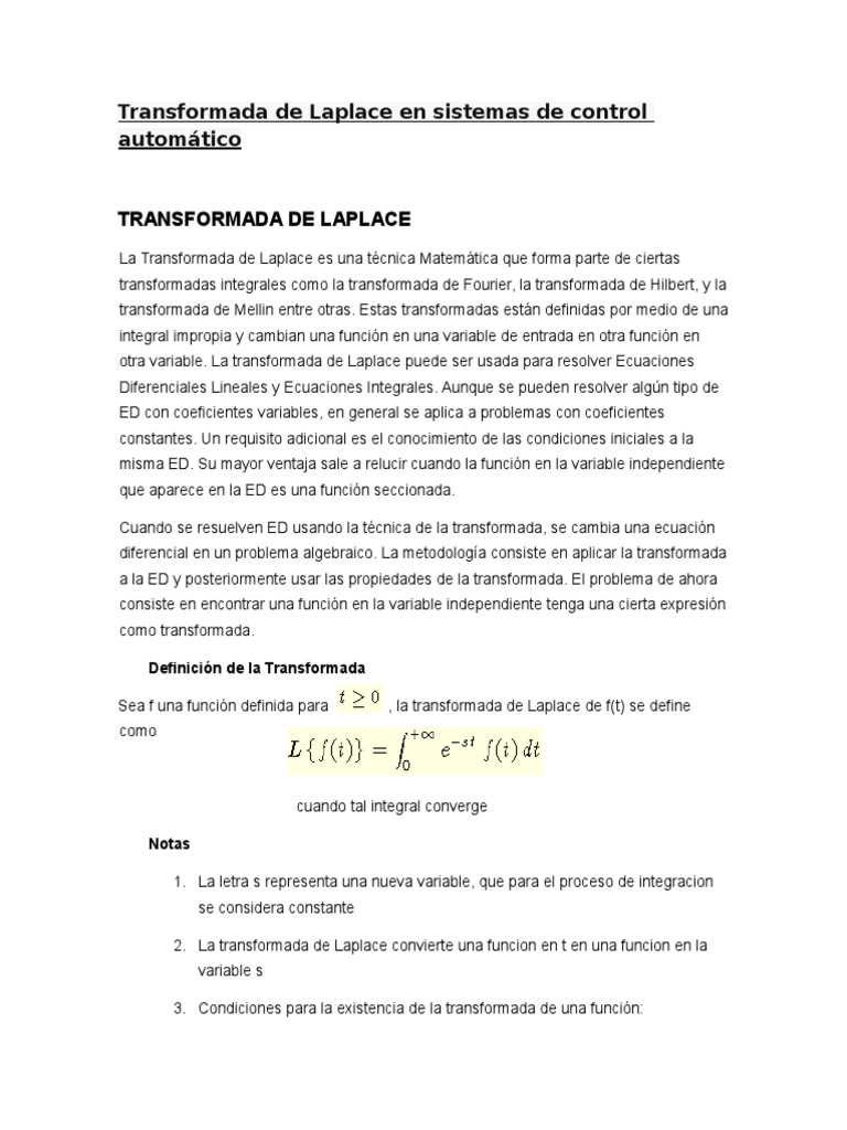 La Transformada de Laplace es una tcnica Matemtica que forma parte de ciertas