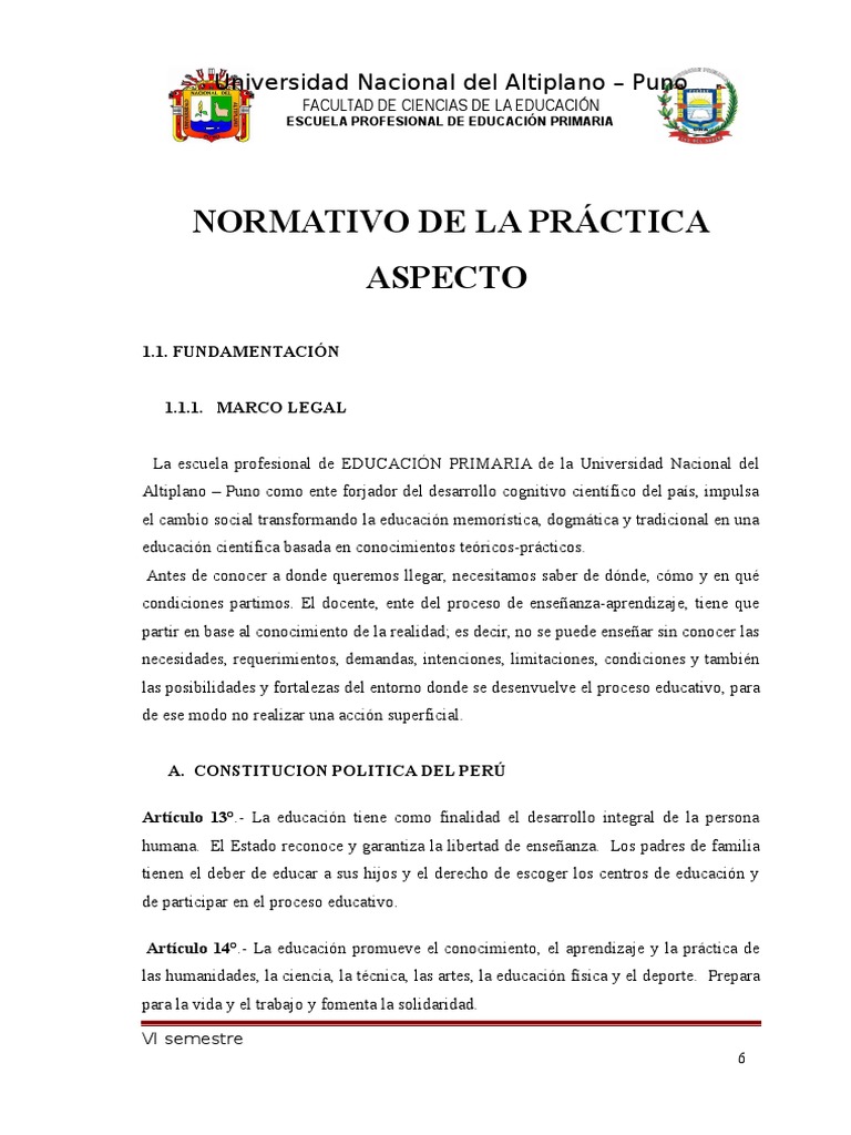 Art. 4.- La prctica PRE-Profesional de Educacin Primaria se plasma a travs de los
