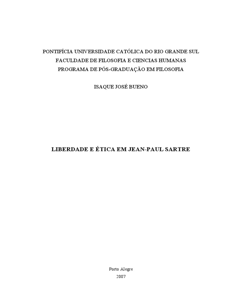 SILVA, Cla Gis e. tica: a liberdade coibio destino segundo Jean-Paul Sartre. Revista