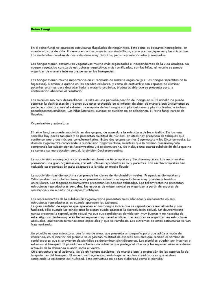 reinos. No entraremos aqu en detalles, para no resultar prolijos. Respecto a los hongos, he