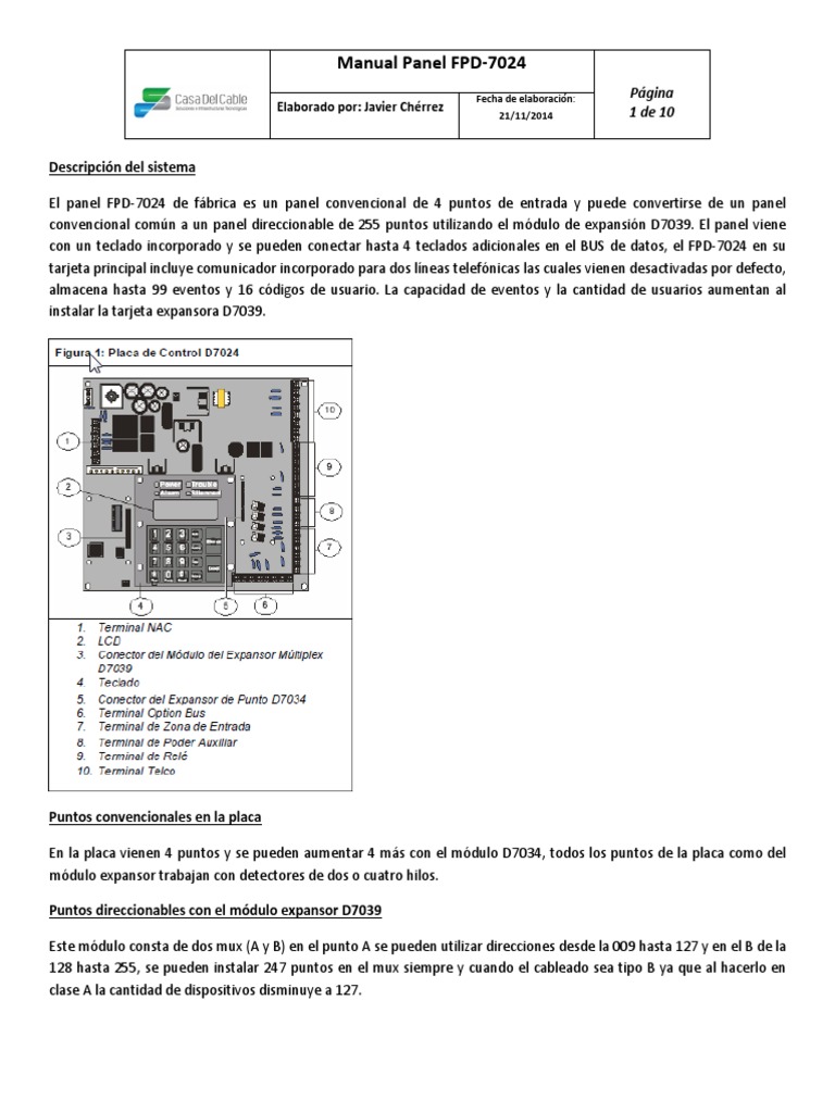 conecta a un mdulo de entrada simple o a cualquiera de los puntos convencionales del panel, es importante que al