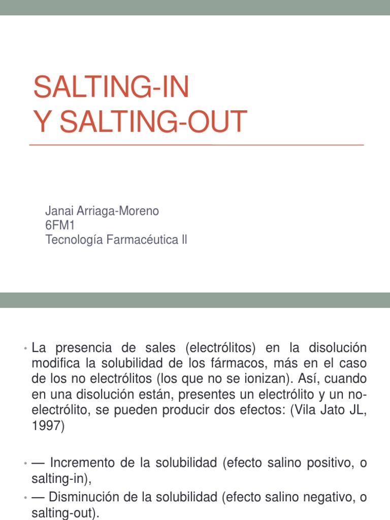 en una disolucin estn, presentes un electrlito y un noelectrlito, se pueden producir dos efectos: (Vila Jato JL,