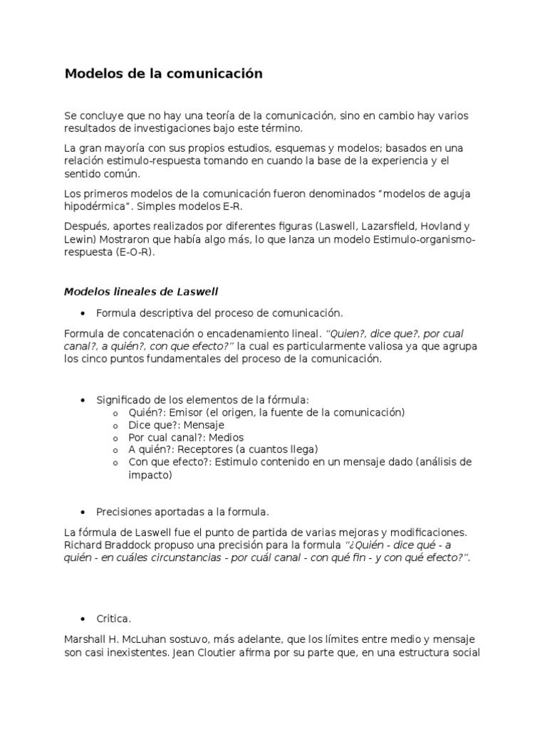La frmula de Laswell fue el punto de partida de varias mejoras y modificaciones.