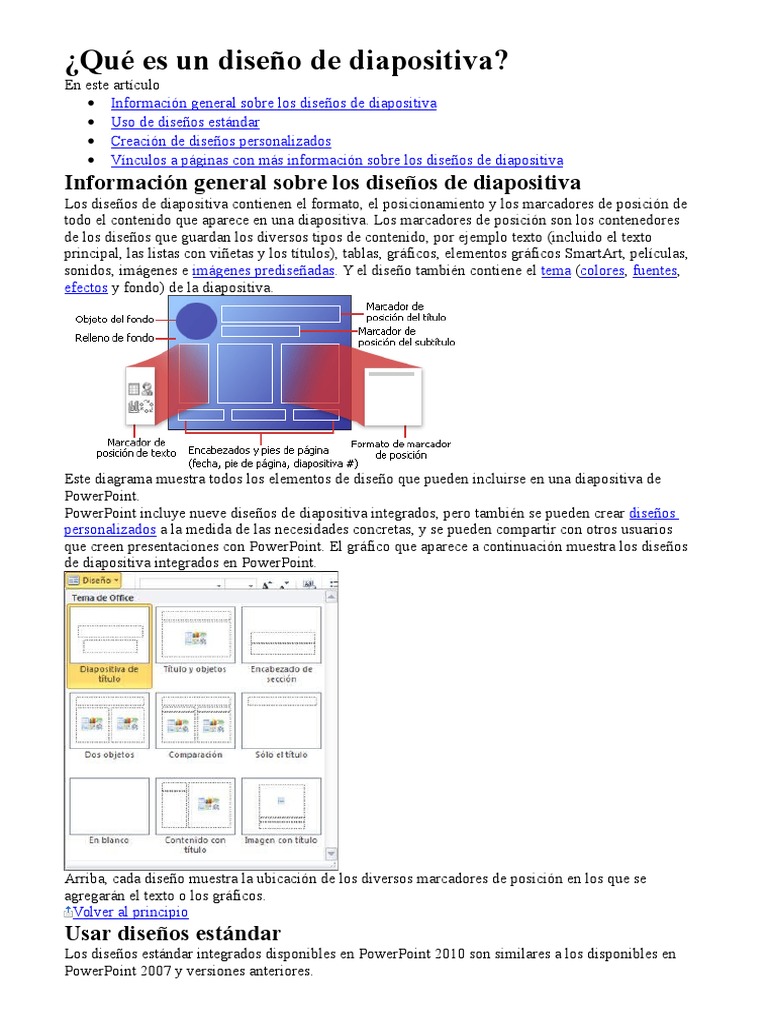 Vnculos a pginas con ms informacin sobre los diseos de diapositiva