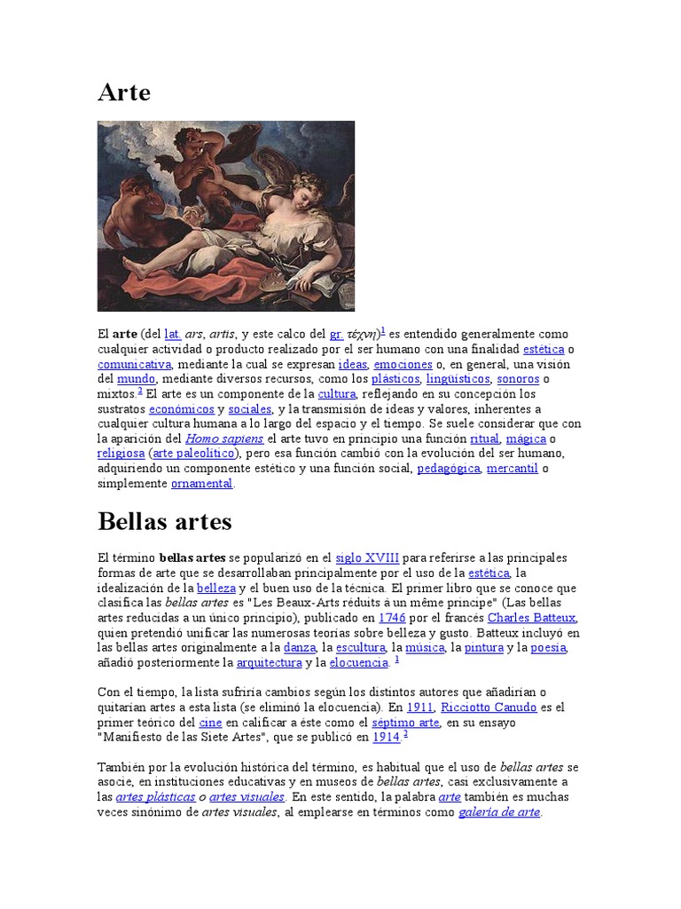Incluidas dentro de las Bellas Artes,3 el trmino artes plsticas aparece a principios del