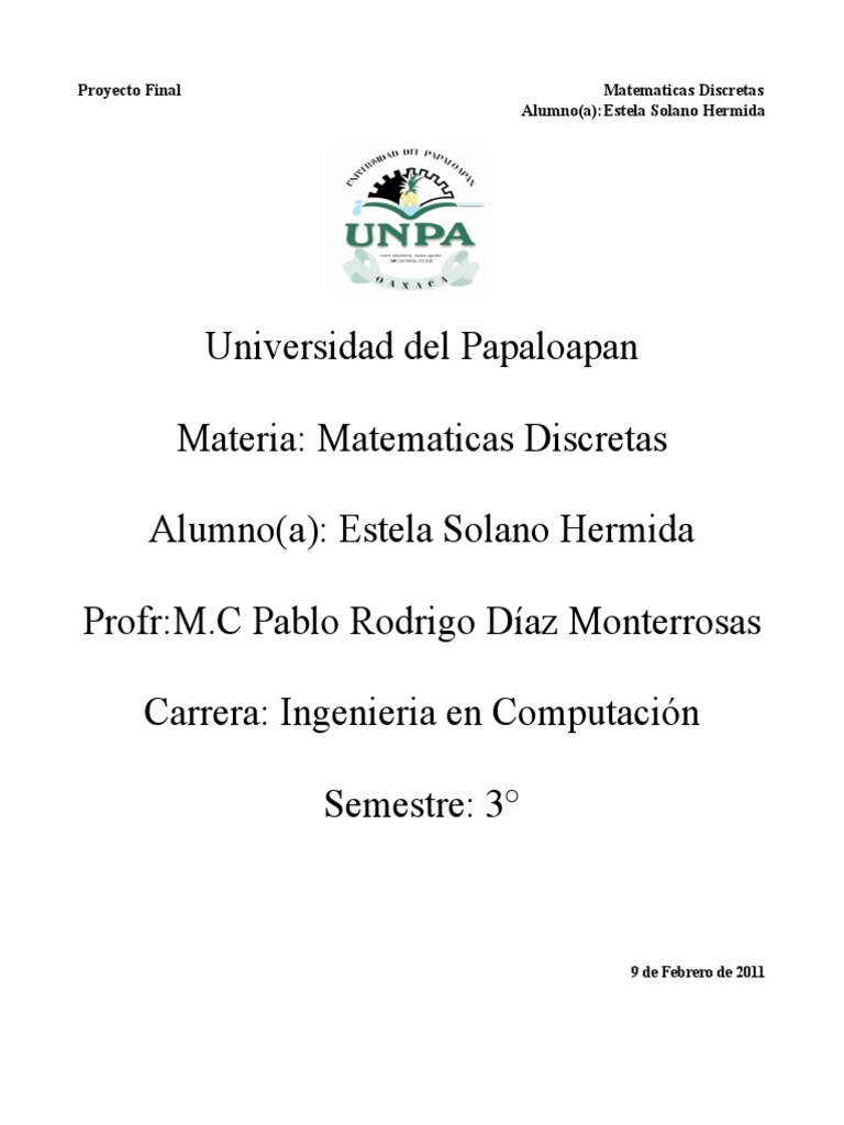 Materia: Matematicas Discretas