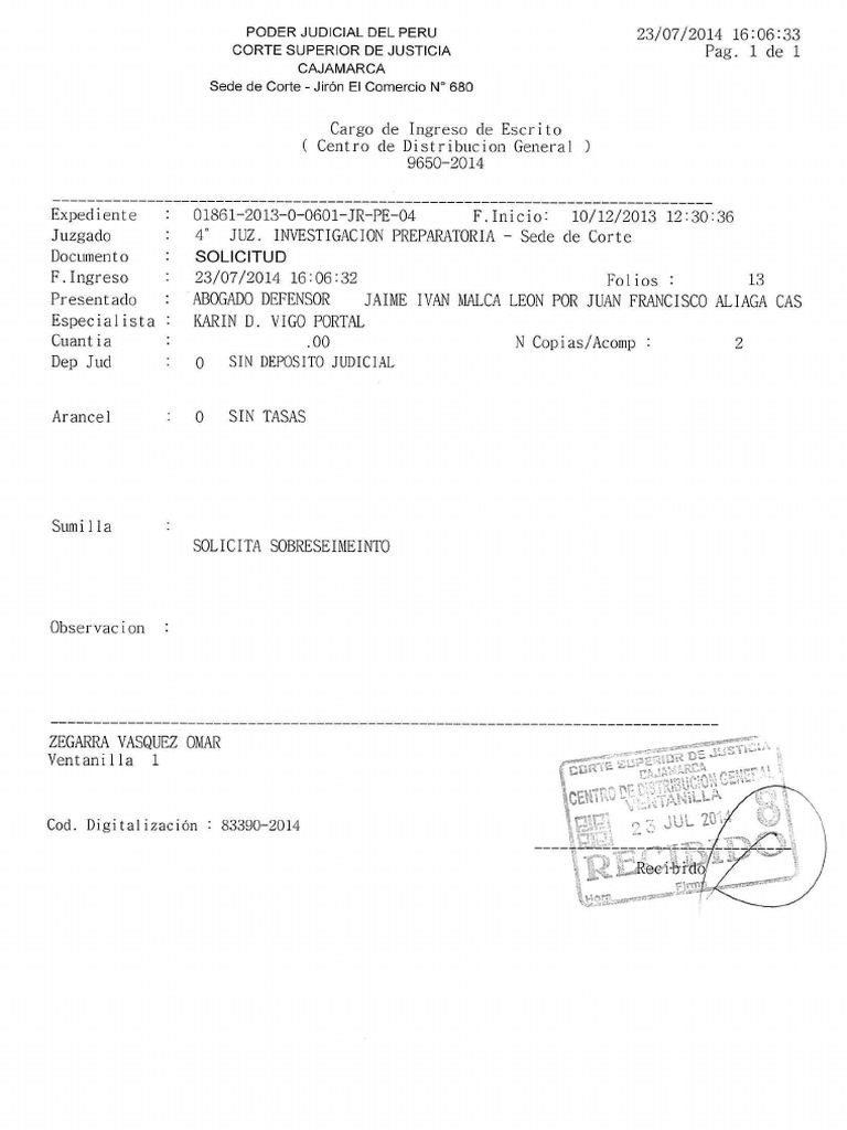 16. Informe 63-2013-DML-IICAJAMARCA, en el cual se informa sobre las