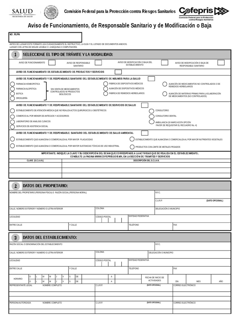 Aviso de Funcionamiento, de Responsable Sanitario y de Modificacin o Baja
