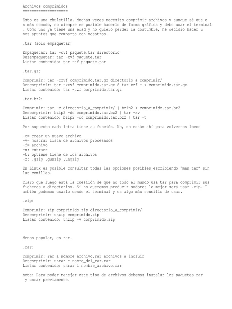 Esto es una chuletilla. Muchas veces necesito comprimir archivos y aunque s que e