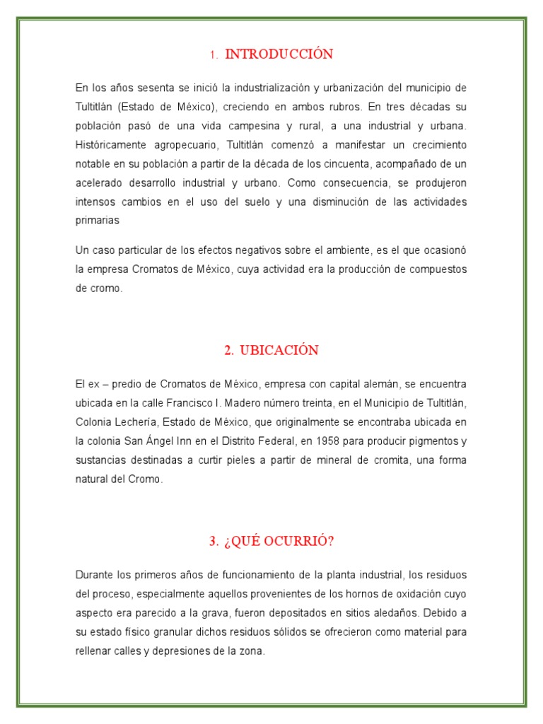 manera inadecuada, procedentes de la empresa Cromatos de Mxico S.A., se