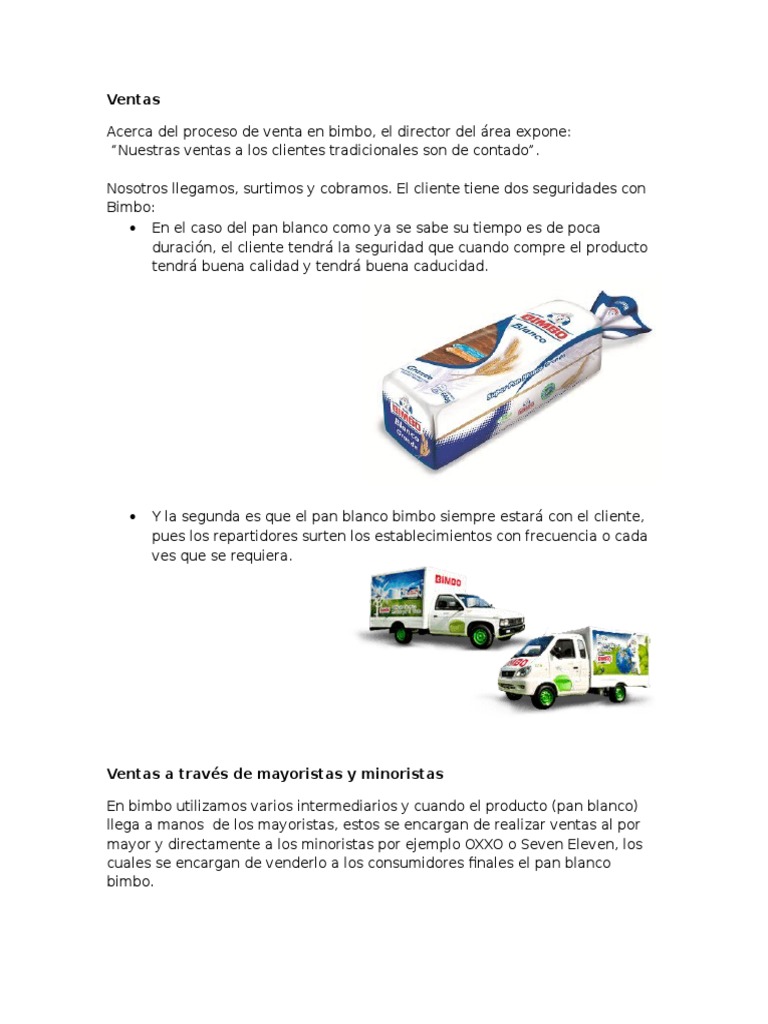 En bimbo utilizamos varios intermediarios y cuando el producto (pan blanco)