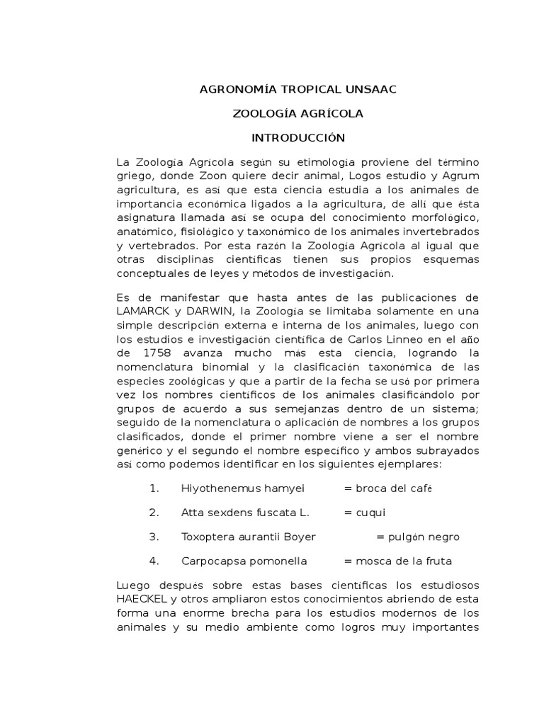 La Zoologa Agrcola segn su etimologa proviene del trmino