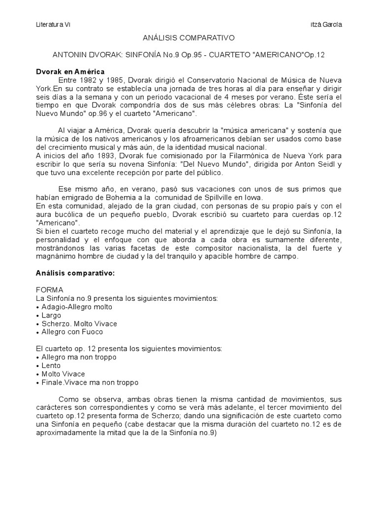 esencial en ambas obras, en el caso del cuarteto, Dvorak dar la relacin entre los