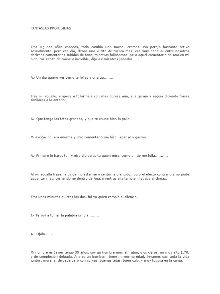 A.- Primero lo haras tu, y otro dia seras tu quien mire, como un tio me folla...........