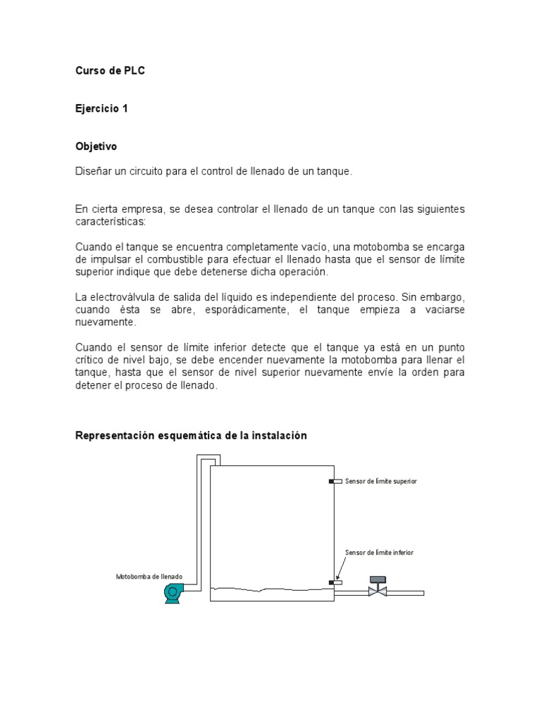 En cierta empresa, se desea controlar el llenado de un tanque con las siguientes