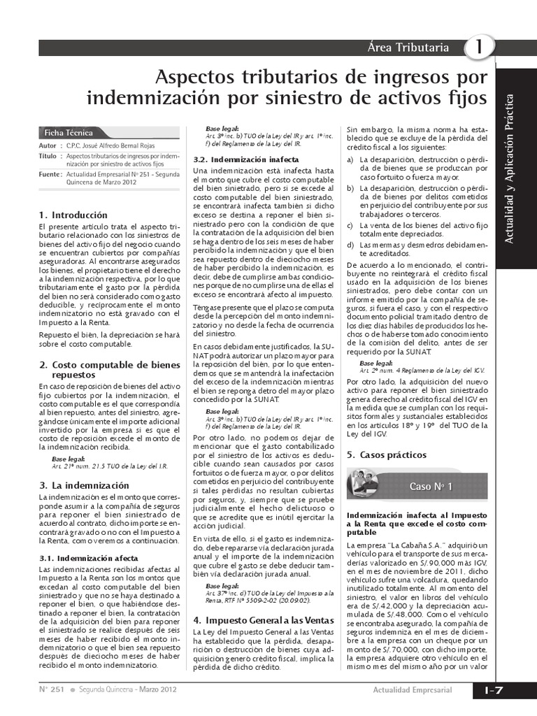 indemnizacin por siniestro de activos fijos