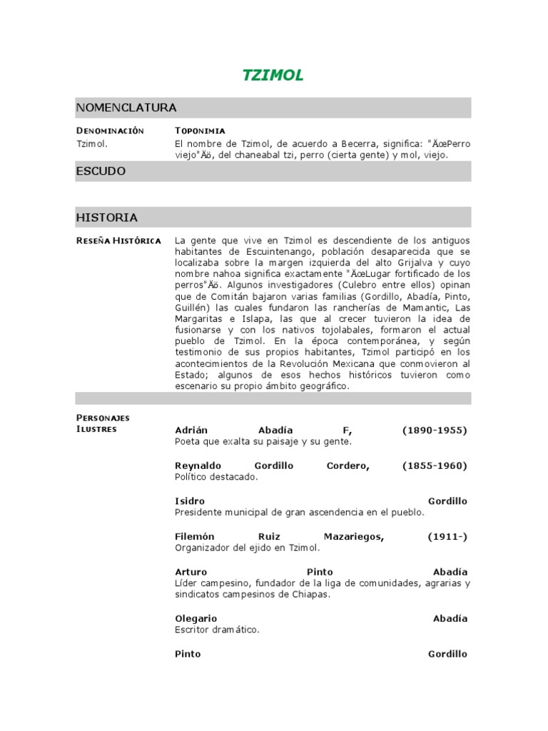 pueblo de Tzimol. En la poca contempornea, y segn