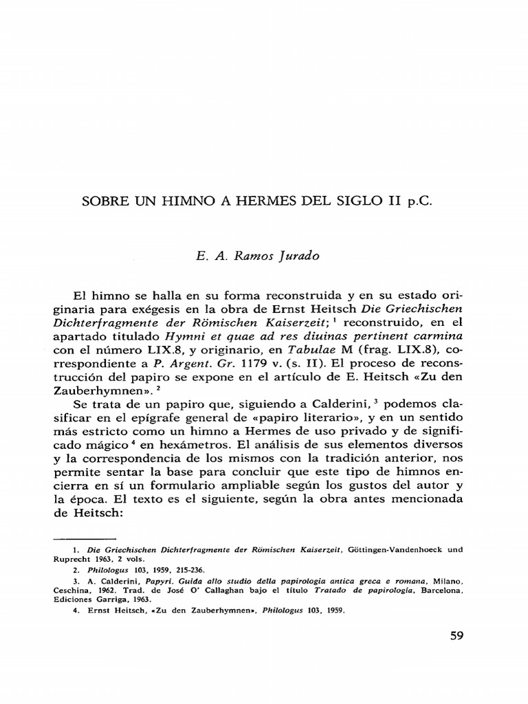 con el nmero LIX.8, y originario, en Tabulae M (frag. LIX.8), correspondiente a P. Argent. Gr. 1179 v. (s. II). El proceso de reconstruccin del papiro se expone en el artculo de E. Heitsch Zu den