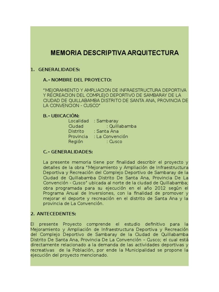 MEMORIA DESCRIPTIVA ARQUITECTURA