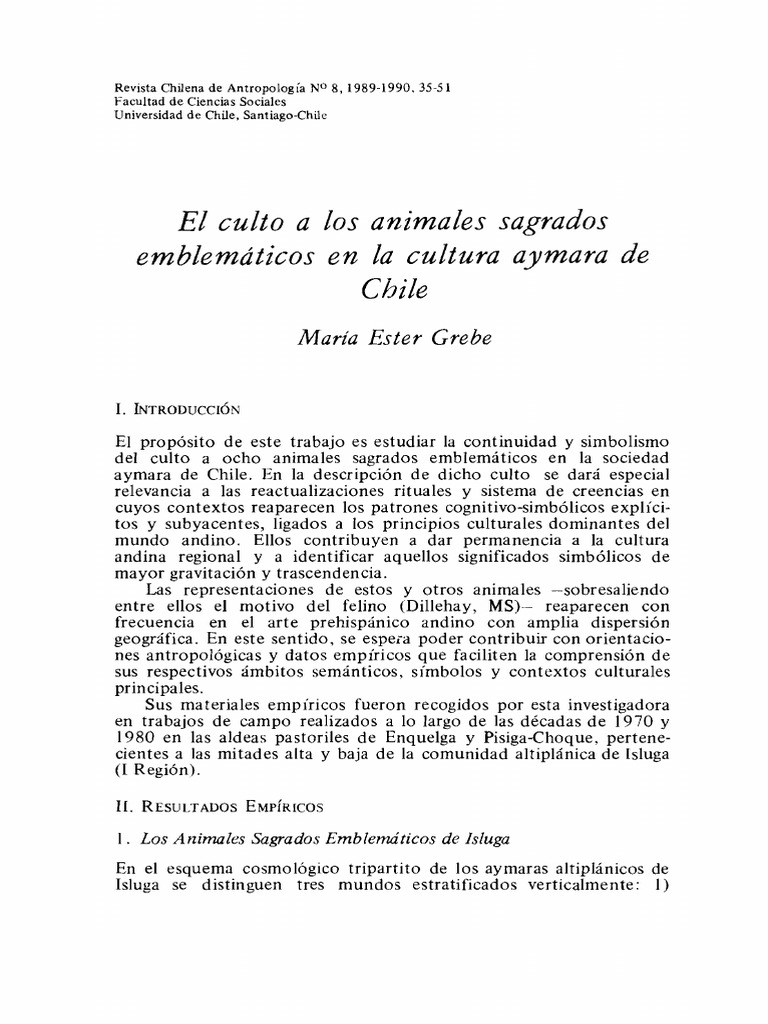 Grebe, M. Ester. "Etnozoologa Andina: Concepciones e Interacciones del