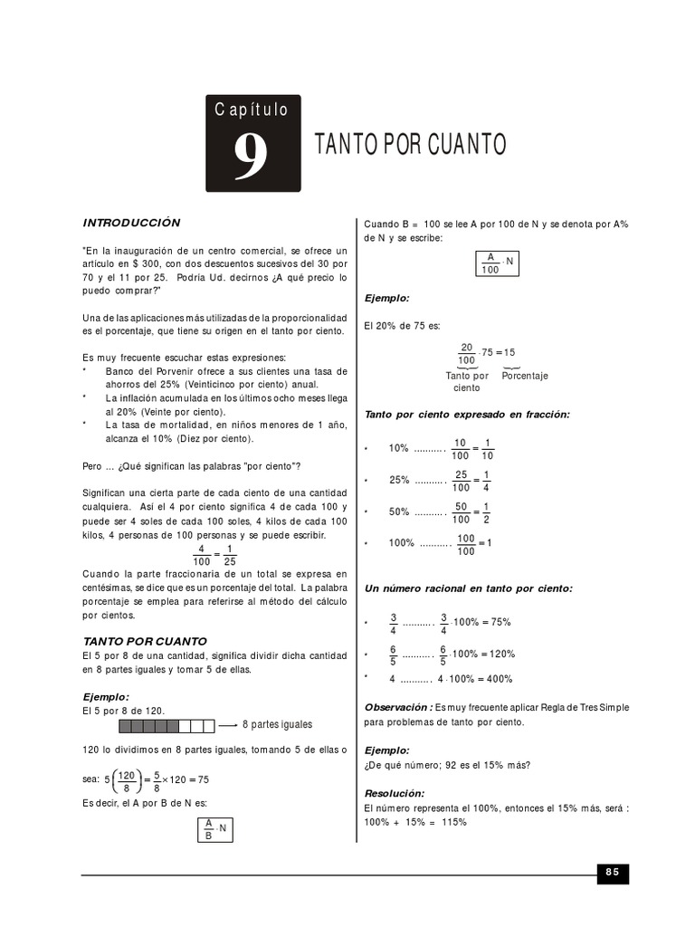 Cuando B = 100 se lee A por 100 de N y se denota por A%