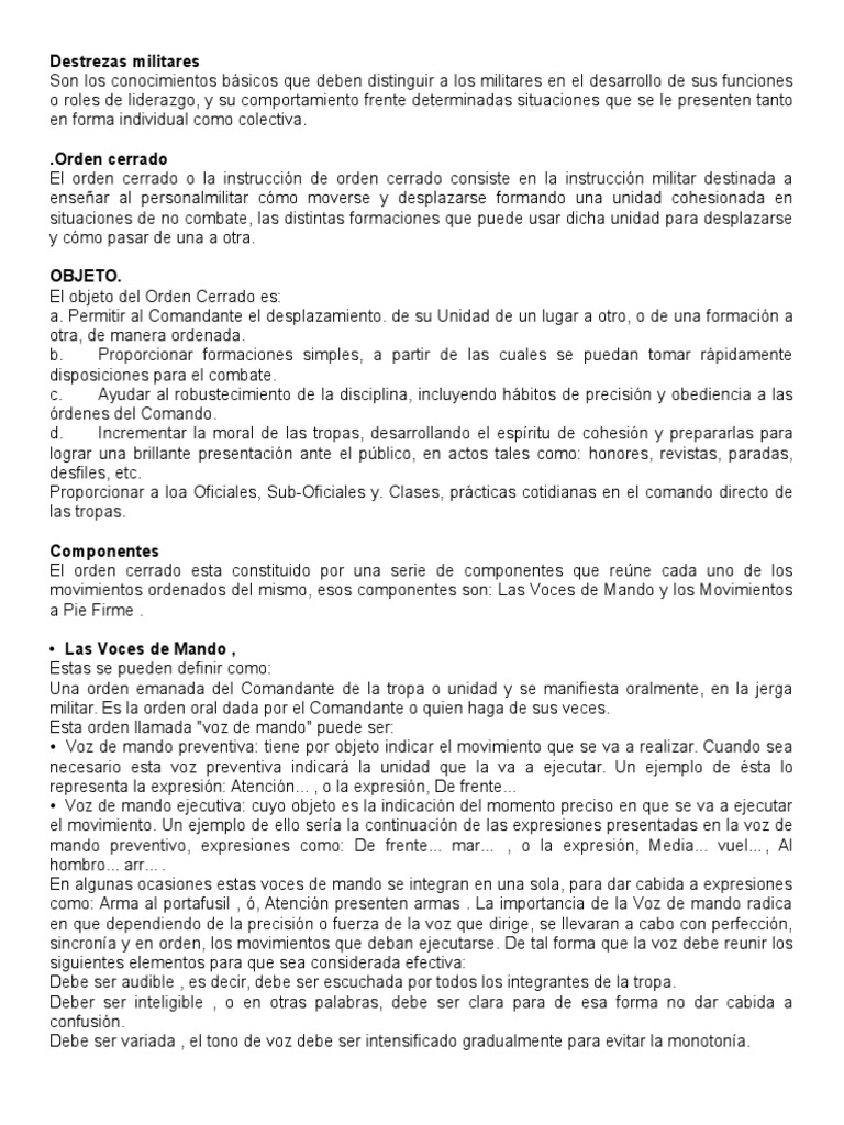 El orden cerrado o la instruccin de orden cerrado consiste en la instruccin militar destinada a