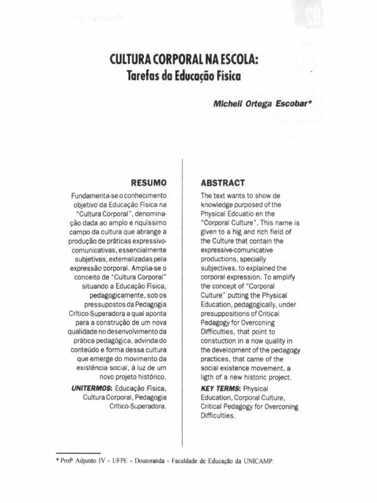 ampliar esse conceito de "Cultura Corporal", situando a disciplina Educaco