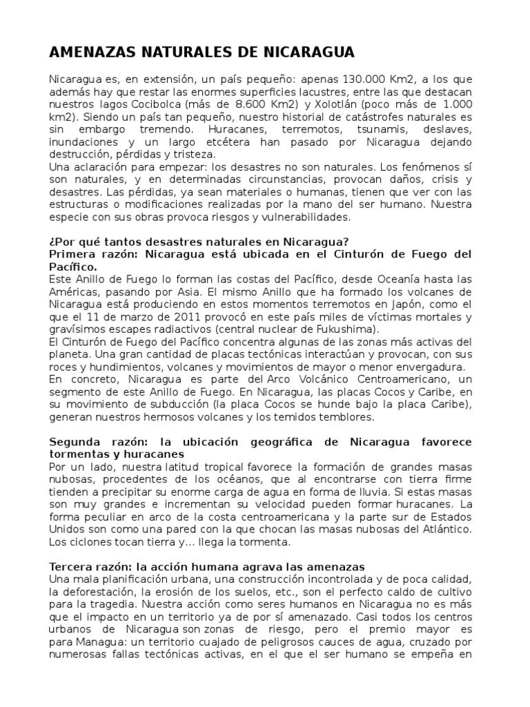 Por qu tantos desastres naturales en Nicaragua?