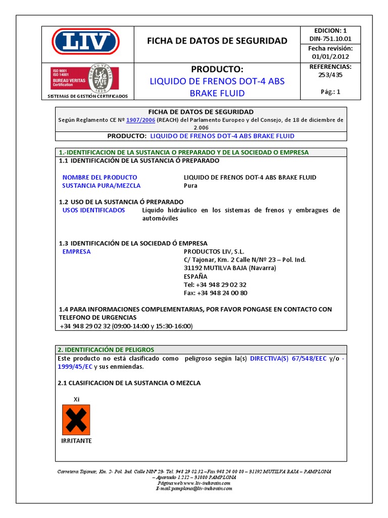 PRODUCTO: LIQUIDO DE FRENOS DOT-4 ABS BRAKE FLUID