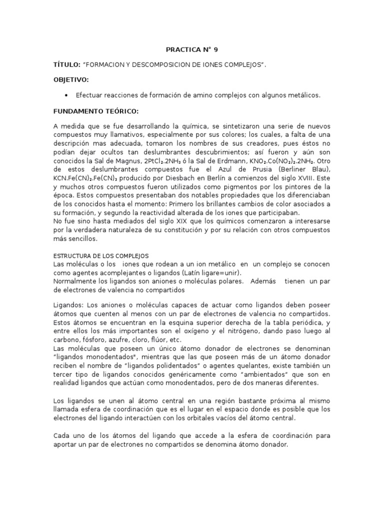TTULO: FORMACION Y DESCOMPOSICION DE IONES COMPLEJOS.