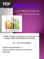 Las reacciones que originan complejos son equilibrios qumicos y por tanto se pueden