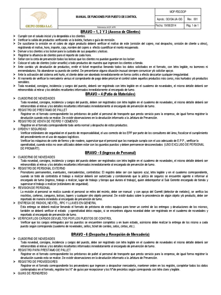 enmendaduras. No abandonar su puesto de control. De presentarse alguna situacin inusual siempre comunicar y/o solicitar apoyo.