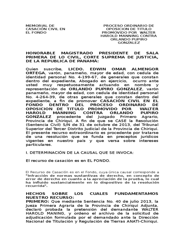 Chiriqu, Ramo de lo Civil, funda su decisin en de condenar